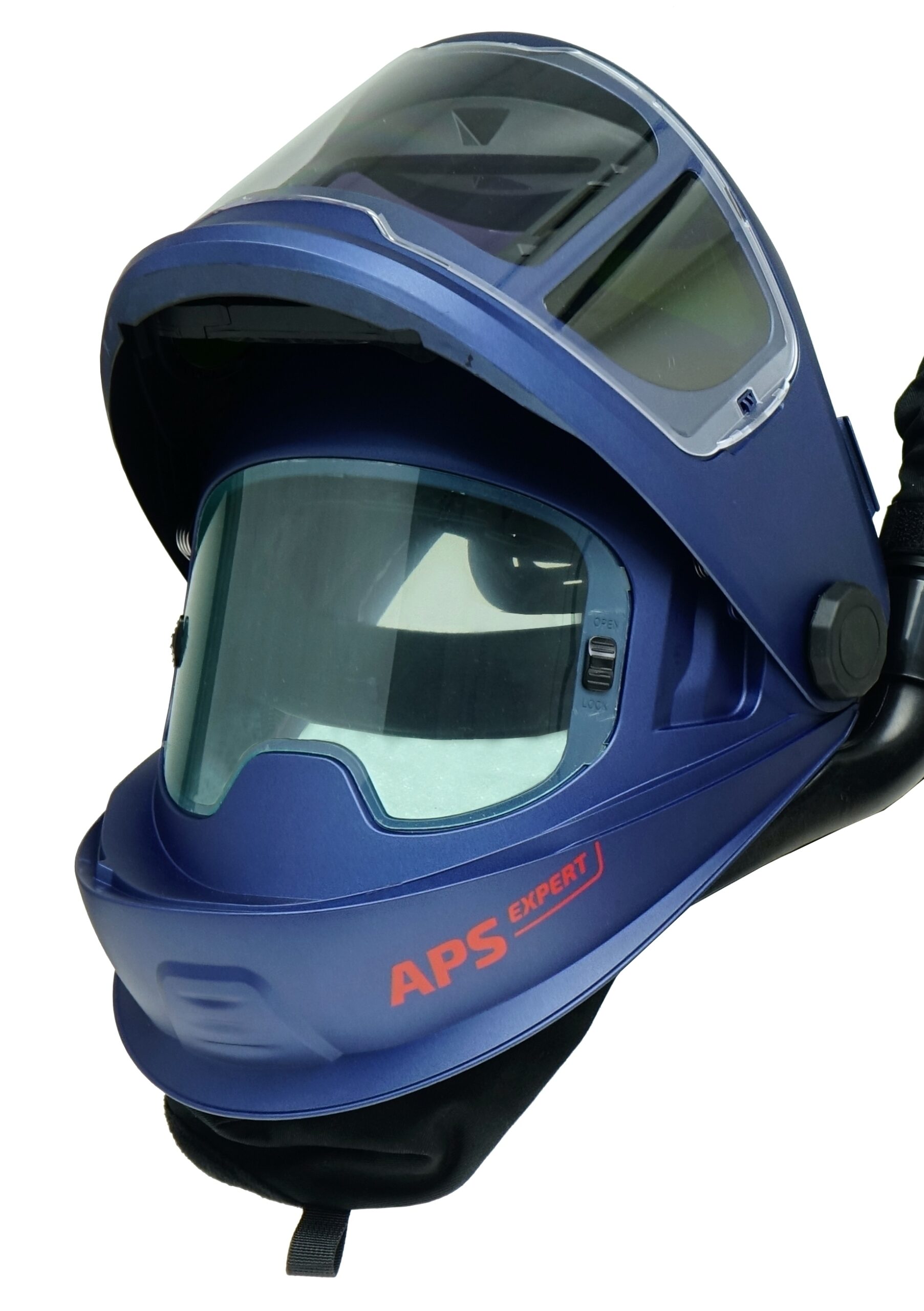 Automatischer Gesichtsschutz / Schweißhelm mit Frischluft System (Air System) APS Expert P31 AIR10V2 UP/DOWN mit einstellbarer Schutzstufe DIN 3 / 4-8 / 9-13, variabler Aufhellzeit, MIX Funktion und der Möglichkeit, die Empfindlichkeit der Sensoren einzustellen.