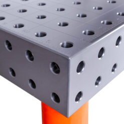 Die Arbeitsfläche ist mit präzise gebohrten und gefrästen Löchern von 16 mm Durchmesser versehen, die in einem regelmäßigen 50mm Raster angeordnet sind. Jedes Loch hat eine Toleranz von ±0,05 mm, der Lochabstand beträgt 50 mm.
